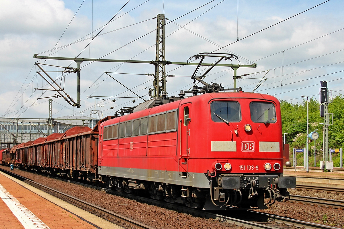 151 103-9 bei der Durchfahrt in Kassel Wilhelmshöhe in Richtung Süden. 17.05.2014
