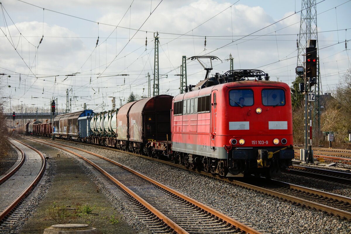 Ein Nachschuss von der 151 103-9 DB rangiert in Aachen-West.