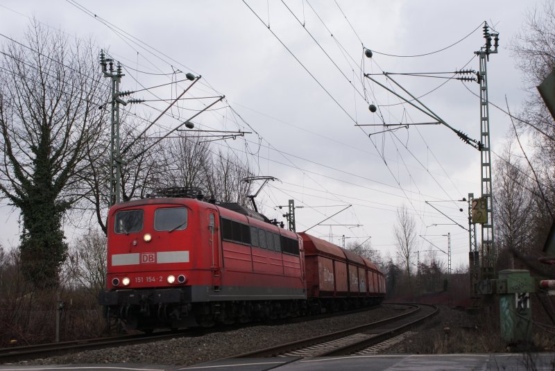 151 154-2 mit Kohlezug am Km 28,190 in Düsseldorf am 21.02.2009
