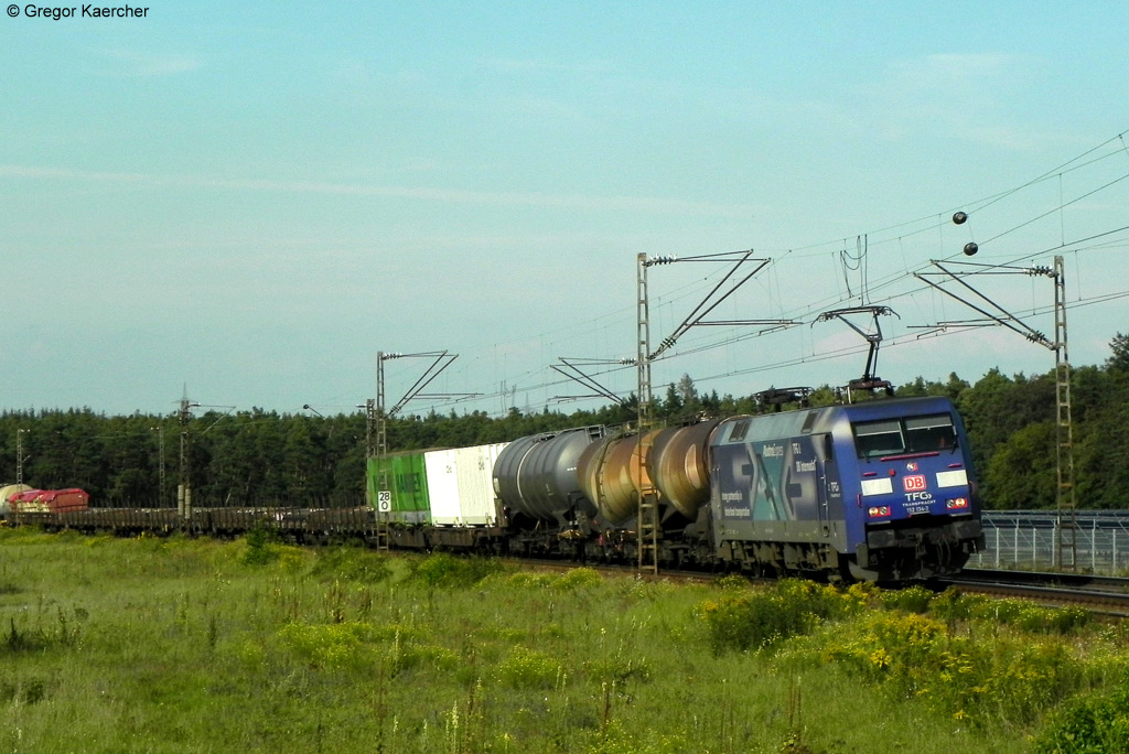 Die 152 134-2 "Albatros" mit einem gemischten Güterzug im Waghäuseler Bogen. Aufgenommen am 31.08.2011 bei Waghäusel.