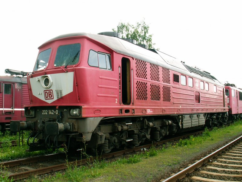 232 142-0 auf z gestellt in Dresden Friedrichstadt am 20.05.05 , links steht 180 004-4 und hinten rechts die 155 025-0