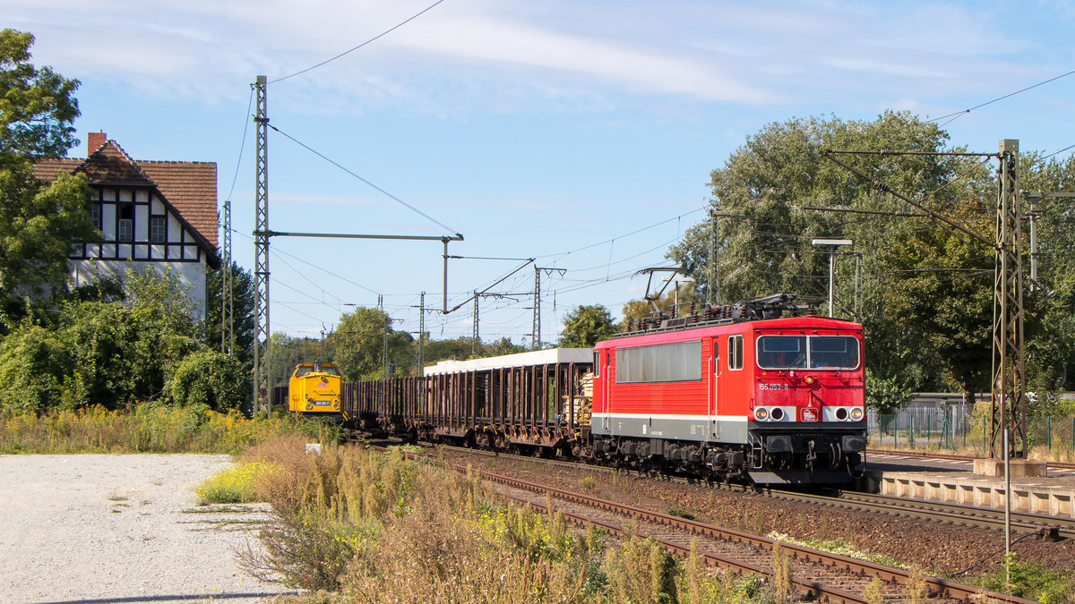 155 053-8 der IntEgro auf einer Überführungsfahrt nach Sonneberg für eine Sonderfahrt bei Dornburg an der Saale (06.10.2023)