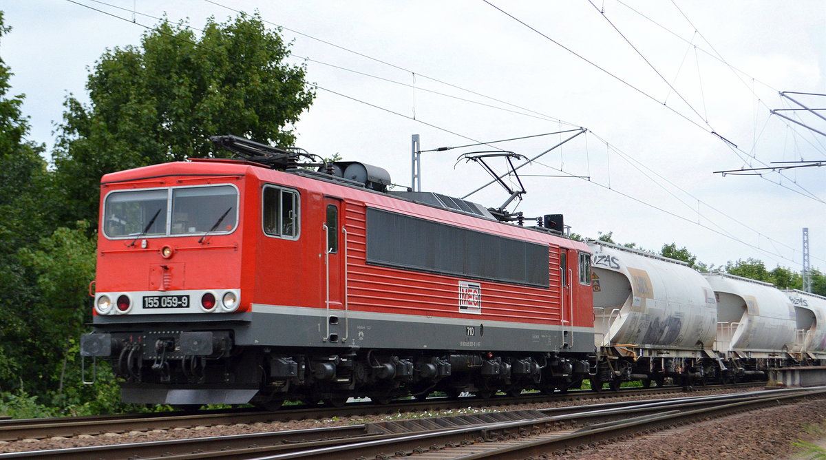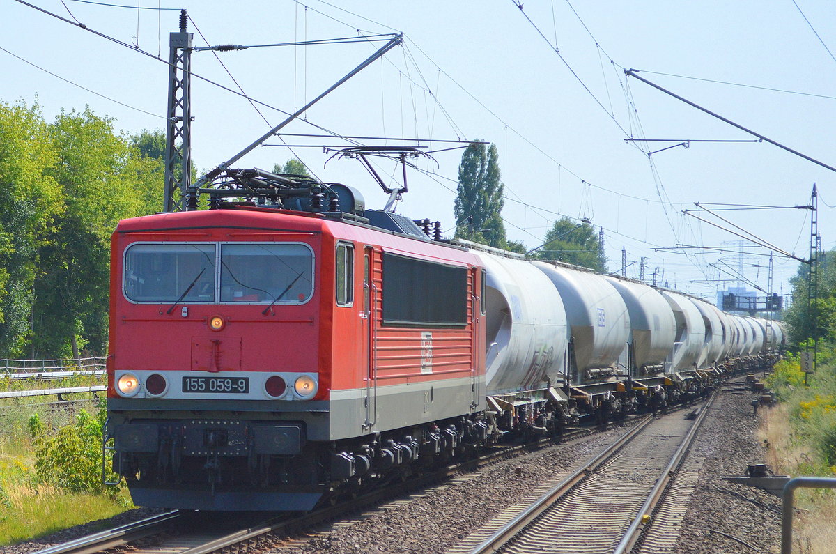 Leipziger Dampf KulTour GbR, Leipzig mit ihrer "155 059-9" (NVR: "91 80 6155 059-9 D-LDK") und einem Getreidezug am 17.07.24 Durchfahrt Bahnhof Magdeburg-Neustadt. Lothar Stöckmann
