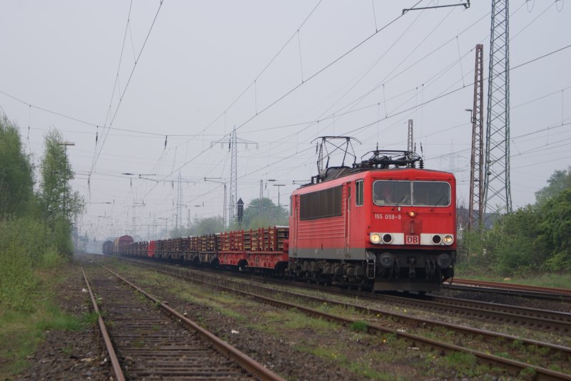 155 059-9 hat einen Güterzug nach Emmerich gebracht und rangiert nun um zu den Abstellgleisen zu fahren. Das Bild wurde von einemZaun aus aufgenommen.