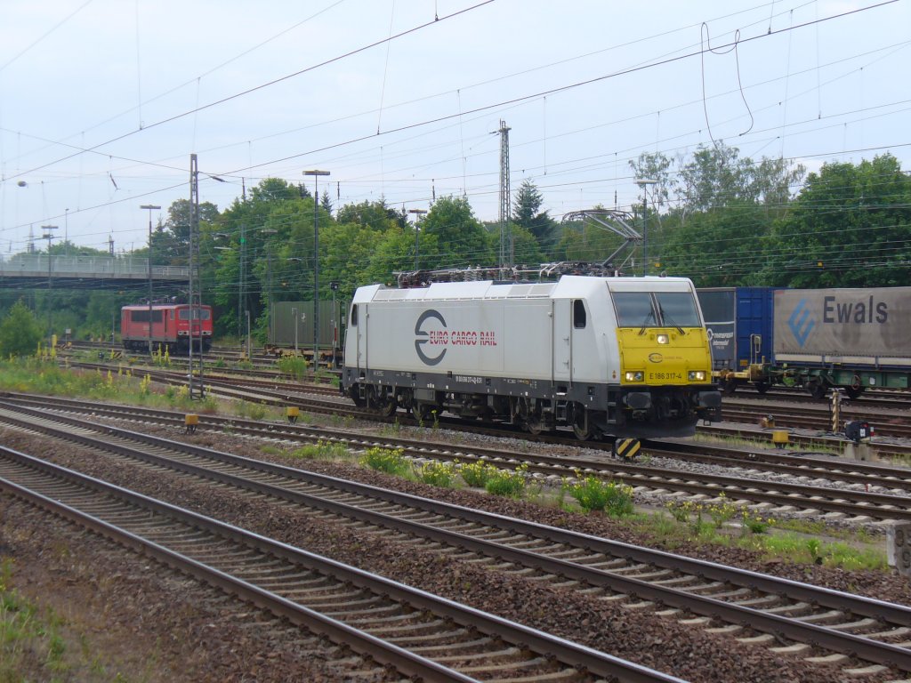 Lokwechsel am 29.06.2011 in Einsiedlerhof, die mit dem Güterzug gekommene 186 317-4 ist auf dem weg aufs Abstellgleis und die 155 082-1 ist zum ankuppeln bereit