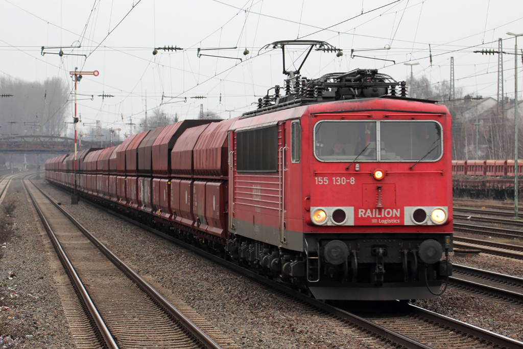 155 130-8 (Railion DB Logistics) färht am 27. Februar 2010 um 13:13 Uhr mit einem Güterzug durch Ahlten