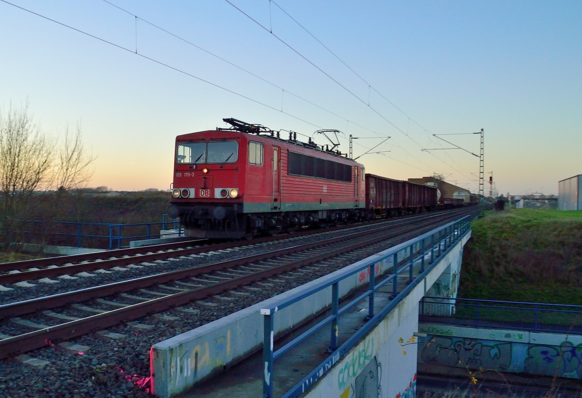 Mit reichlich Gemische am Haken ist die 155 175-3 hier bei Allerheiligen an der K33 Brücke zu sehen. Sie ist in Richtung Köln fahrend abgelichtet am Abend des 20.12.2013 Andreas Strobel