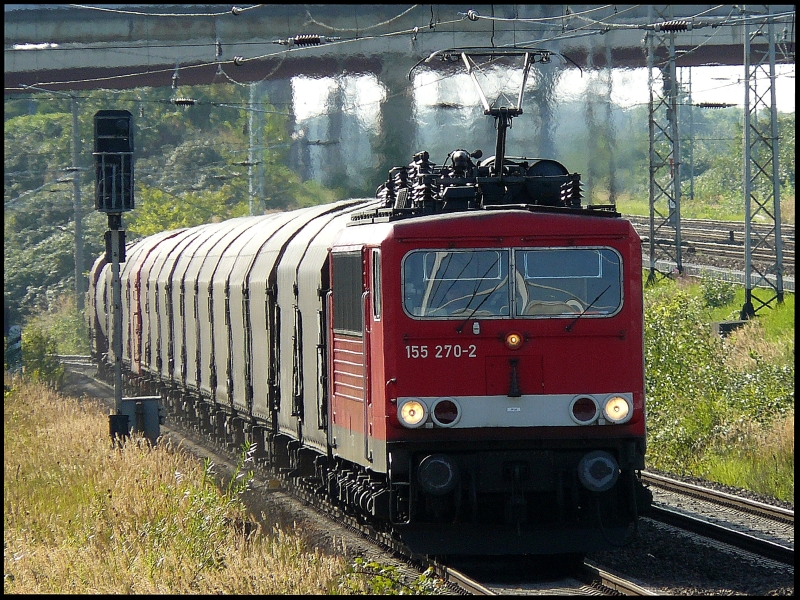 Kurz darauf erreichte 155 270-2 den Bahnhof mit dem CFN 62790 DSTR (Straßgräbchen-Bernsdorf (Oberlausitz)) - BGA (Berlin-Grünau) den Bahnhof Berlin Schönefeld am 20.08. Alexander Wiemer