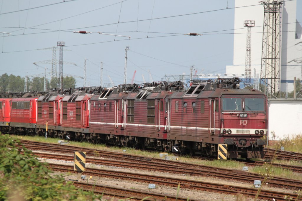 Die Dresdener 180er abgestellt im Rostock-Toitenwinkel,die hiteren sind 180 002-8,180 007-7.17.08.2012