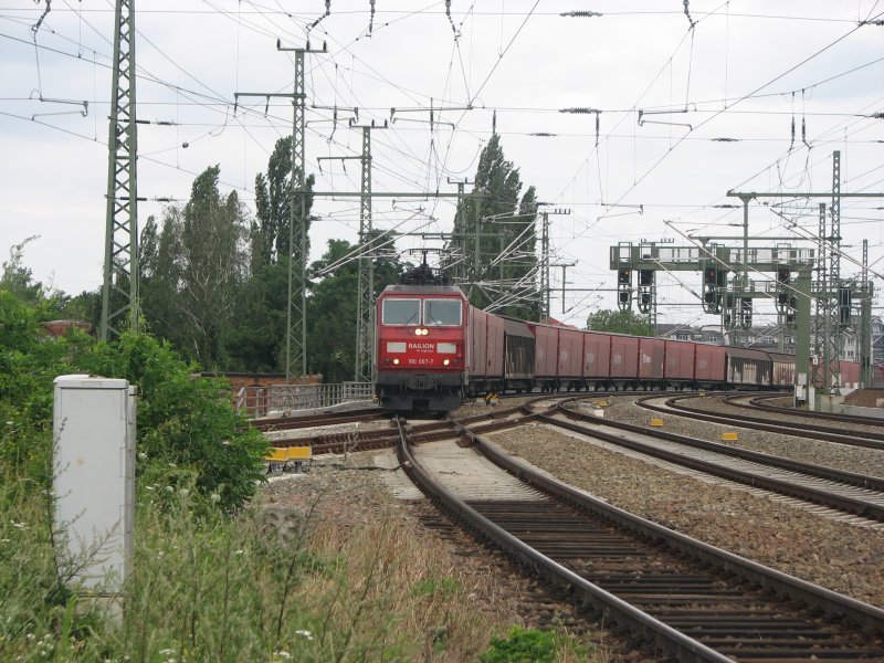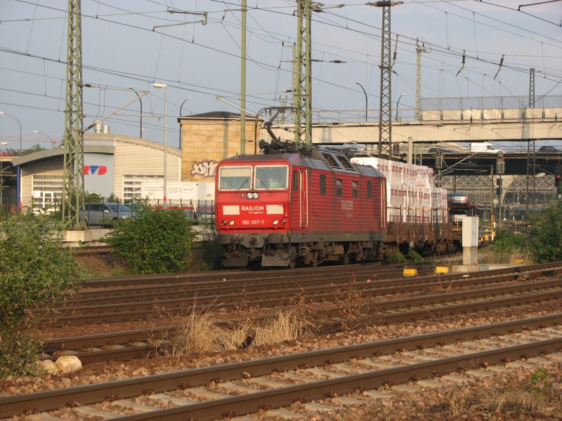 180 007-7 kommt vom Güterbahnhof Dresden-Friedrichstadt und fährt Richtung Tschechien.Ein Gruß noch mal an den freundlichen Lokführer.07.07.07.