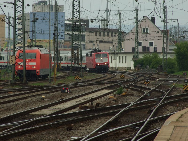 181 224-7 wartet im Koblenzer Hauptbahnhof auf die Übernahme des IC Münster-Trier-Luxemburg am 10.05.2008