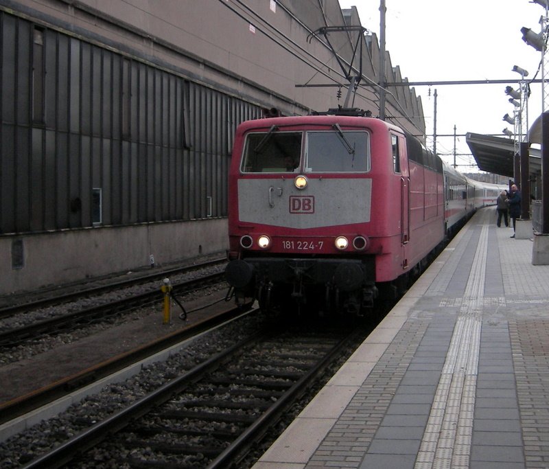 Lok 181 224-7 wird am 05.11.07 mit IC 435 im Bahnhof von Luxemburg bereitgestellt zur Fahrt nach Norddeich Mole. Abfahrt 10.24 Uhr Ankunft in Norddeich Mole 18.04 Uhr.