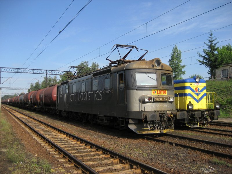Eine Lokomotive 182 037-2 von der CTL LOGISTICS fährt mit einem Kesselzug am 01.10.2007 durch Bydgoszcz Rynkowo in Richtung Bydgoszcz Hauptbahnhof. Hinter 182 fährt eine SM-42. Dariusz Tuczkowski