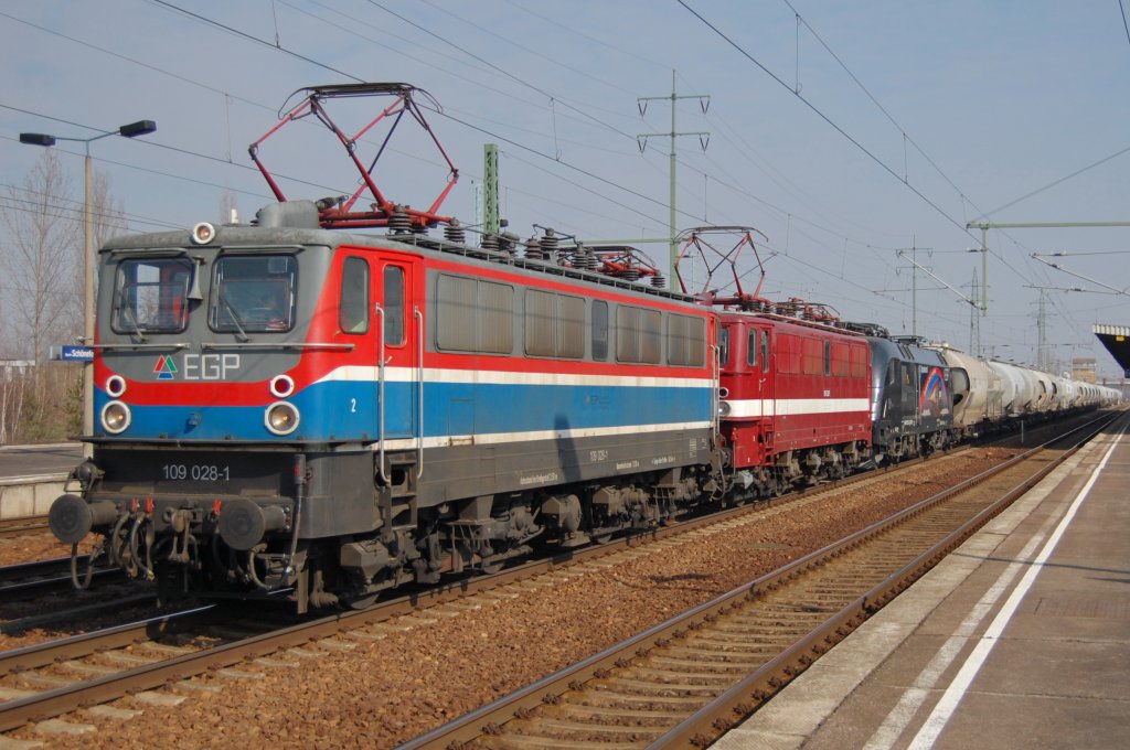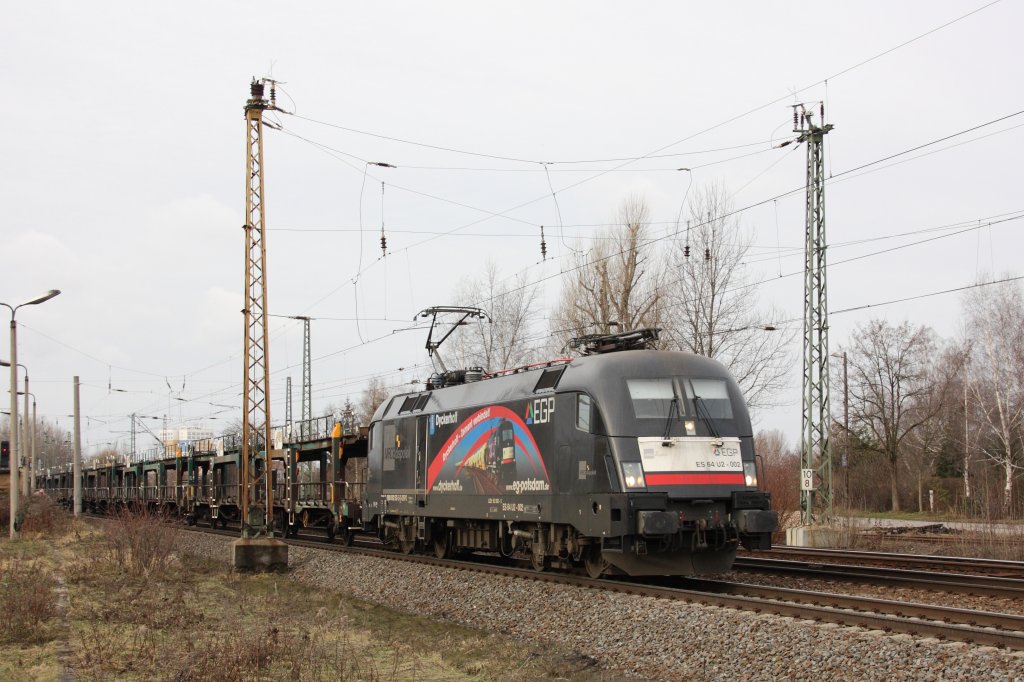 ES 64 U2 - 002 (182 502-5) MRCE im Dienst für die EGP & 212 024-4 (kalt) EGP mit Zementzug zwischen Brandenburg und Götz in Richtung Brandenburg unterwegs. 15.04.2011 Stephan Kemnitz