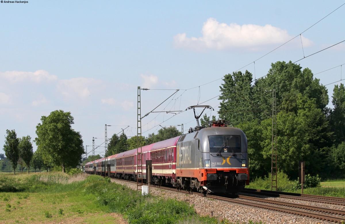 Ebenfalls am Morgen des 31.05.2014, die Hectorrail 242.502 "Zurg" (182 502-5), die am Nachmittag des 30.05.2014 in einem Containerzug von SBB Cargo und der Zuglok Re 482 028-8 nach Basel Bad Bf gebracht wurde. Sie wird am späteren Morgen einen Euro-Express Pilgerzug von Basel nach Emmerich bespannen. Tobias Schmidt