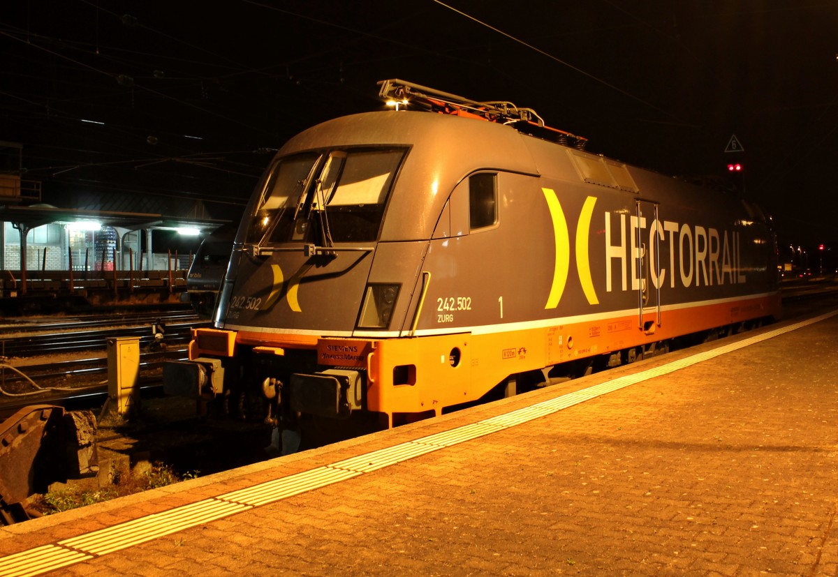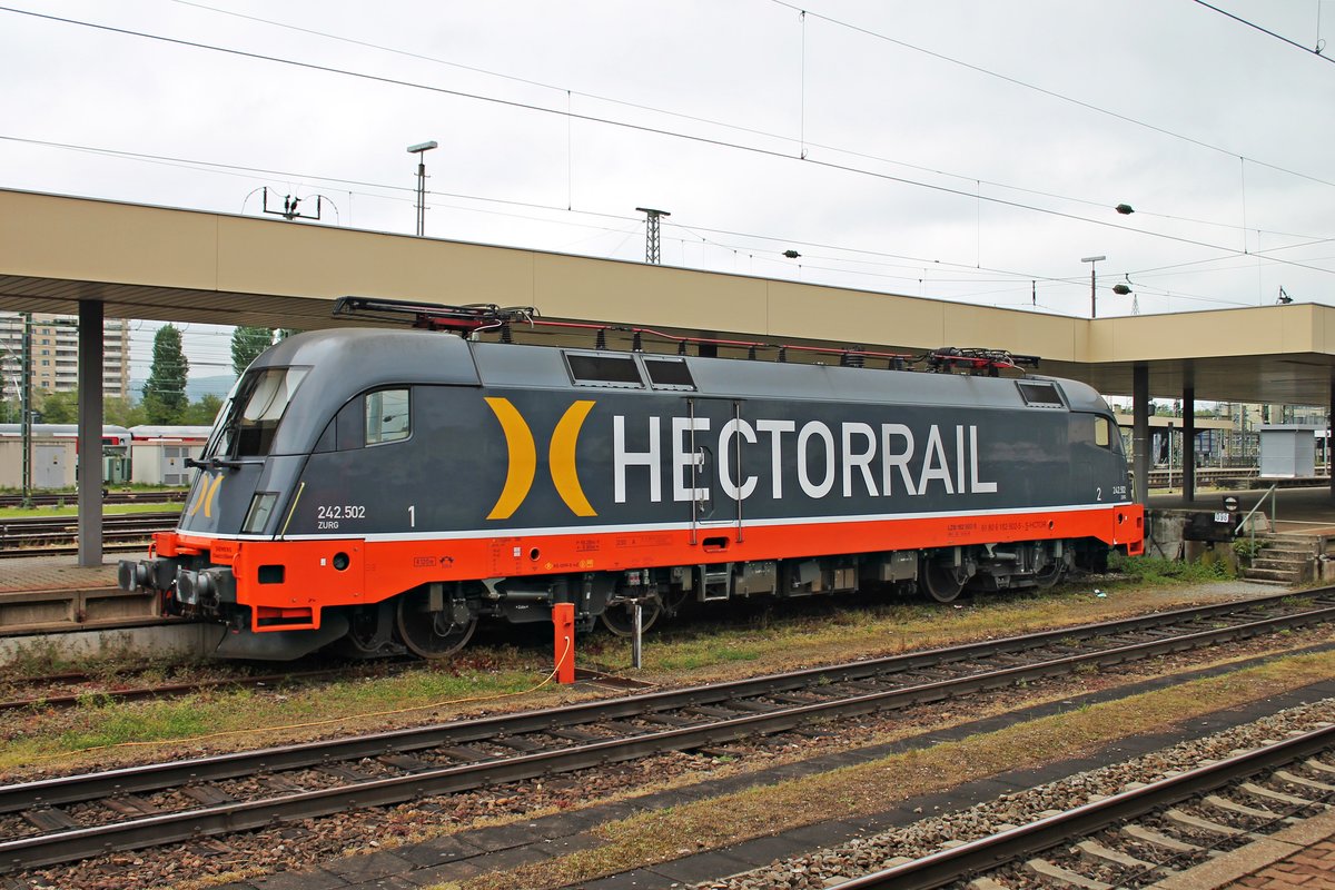 Am Nachmittag des 13.05.2016 stand Hector Rail 242.502 (182 502-5) "Zurg" abgestellt auf Gleis 96 im Badischen Bahnhof von Basel, nachdem sie einen Pilgerzug nach Lourdes in die Schweiz gebracht hatte. Tobias Schmidt