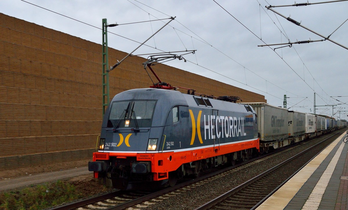 Die Hectorrail 242.502/182 502-5 Zurg ist am Samstagnachmittag den 8.Februar 2014 hier durch Allerheiligen fahrend gen Köln mit einem Klv-Zug am Haken abgelichtet zu sehen. Andreas Strobel