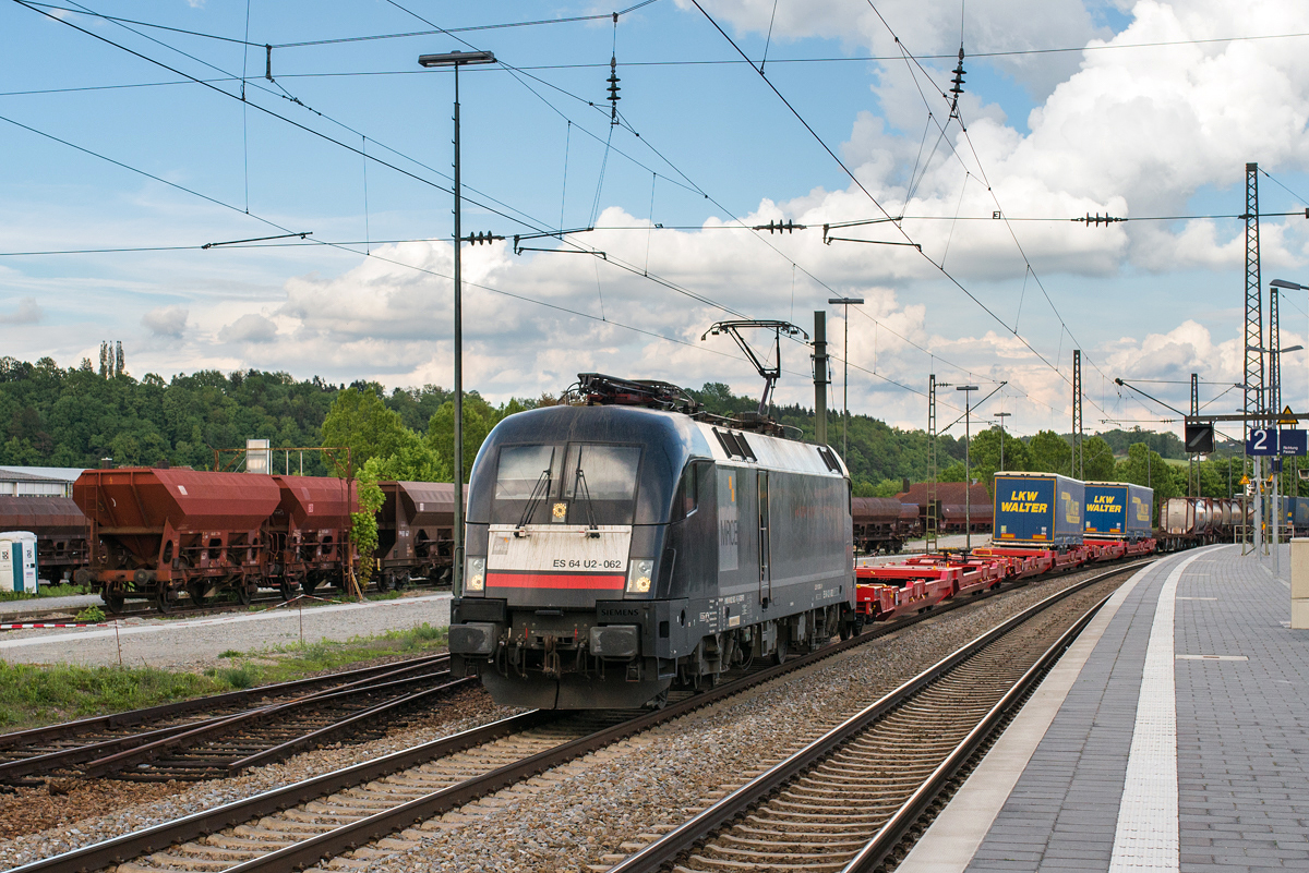 Mit einem Containerzug aus Belgien fuhr am Morgen des 30.10.2017 die MRCE/XRAIL ES 64 U2-062 (182 562-9), welche den Zug seit Aachen West bespannte, bei Hügelheim in Richtung Schweizer Grenze. Tobias Schmidt
