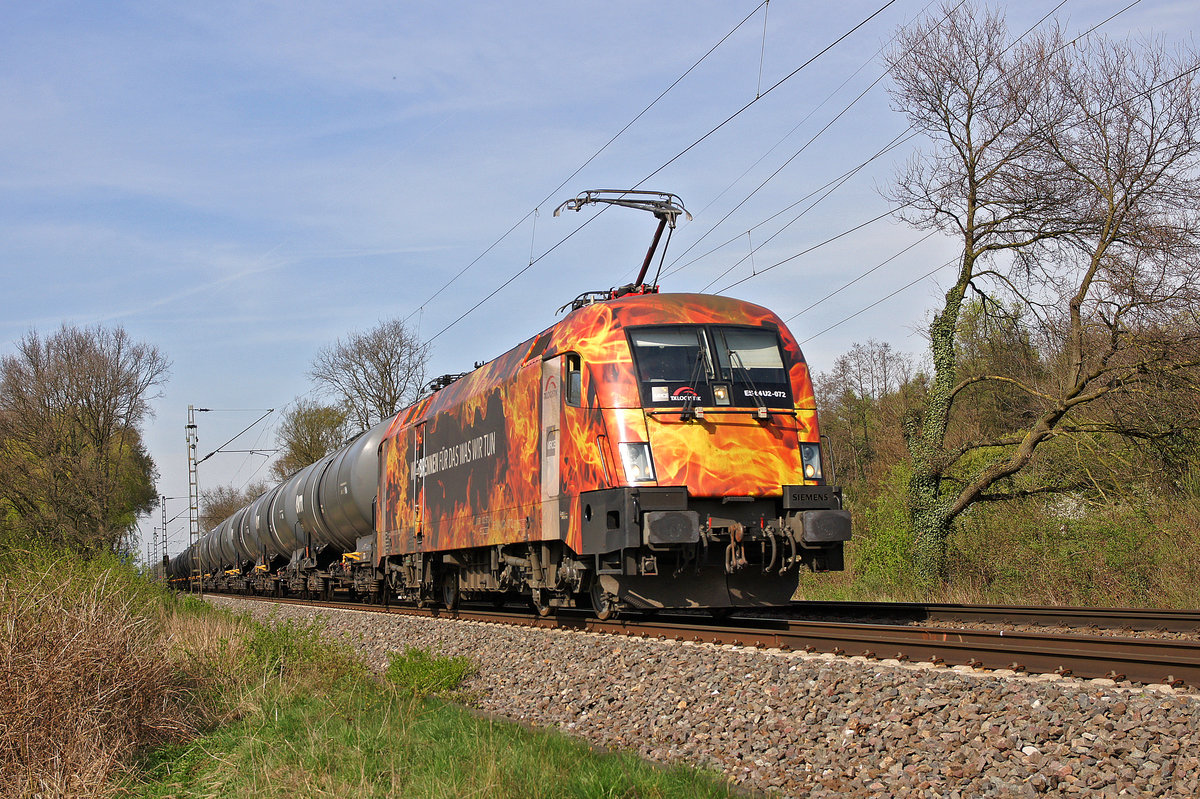 Der "BosporusSprinter" 182 572-8 (Siemens ES64U2-072) fährt in Tamm überraschend auf dem S-Bahn-Gleis seinem nächsten Halt Ludwigsburg entgegen.
