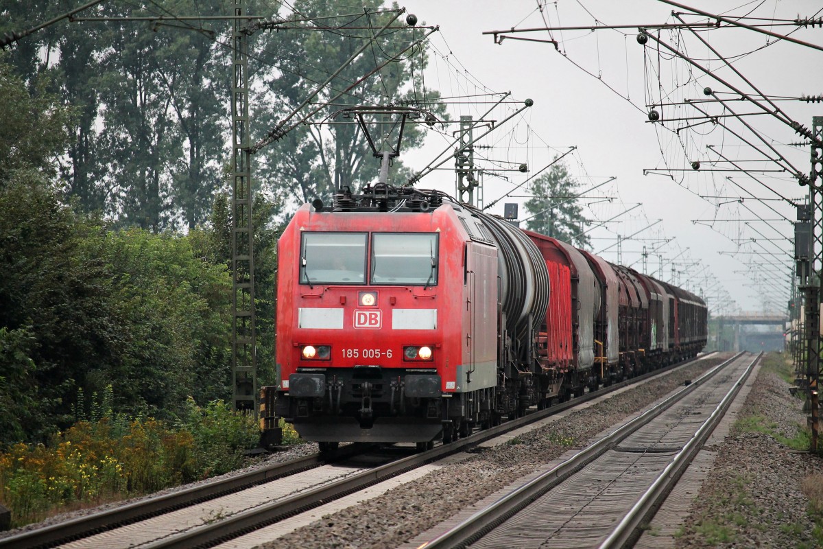 185 005-6 DB kommt mit einem gemischten Güterzug aus Mannheim-Gbf(D) nach Köln-Gremberg(D)