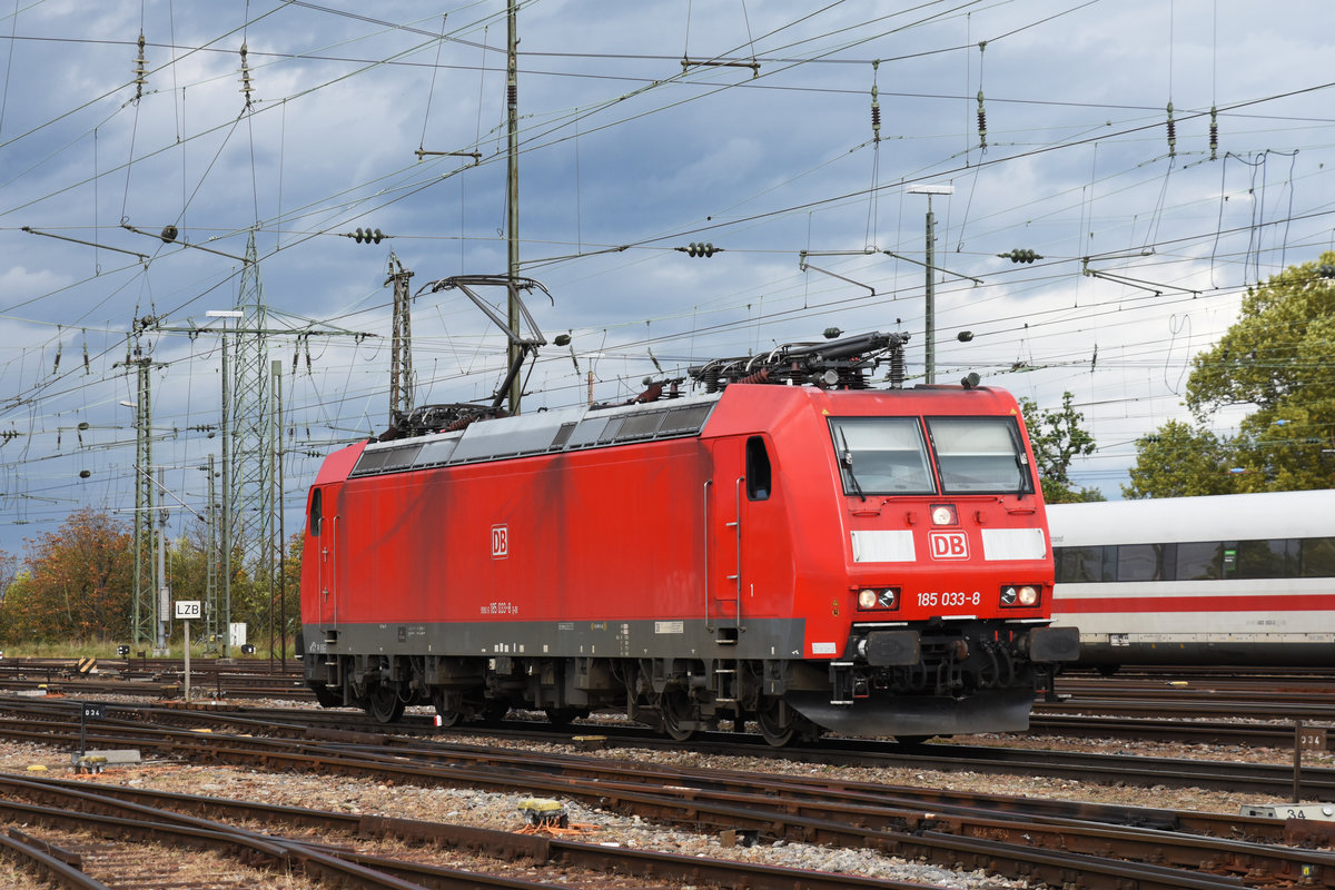 DB Lok 185 033-8 durchfährt solo den badischen Bahnhof. Die Aufnahme stammt vom 18.10.2019.