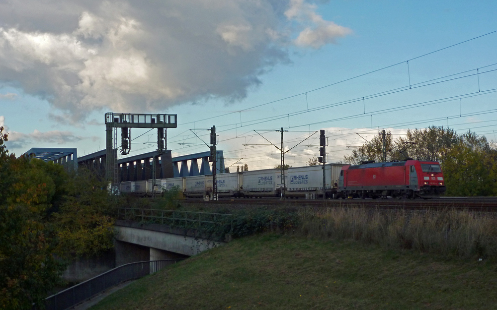 185 321-4 am 27.10.2012 mit einem KLV-Zug bei den hamburger Süderelbbrücken.