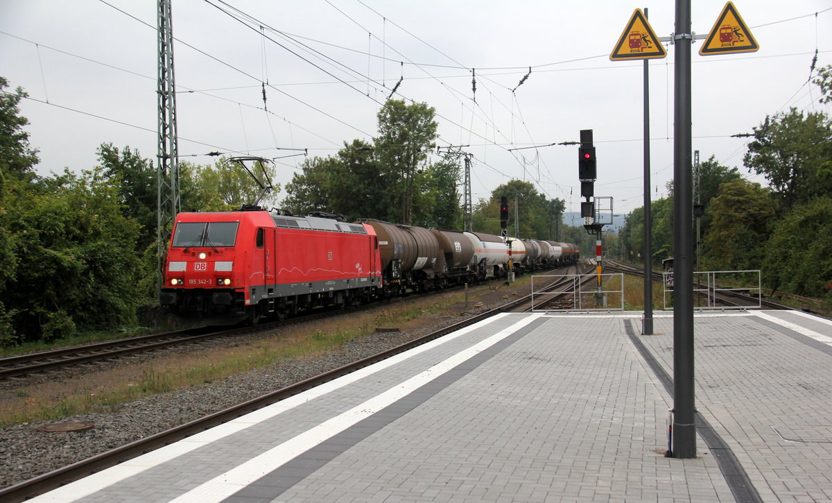 185 342-3 DB  kommt mit einem Kesselzug aus Antwerpen-BASF(B) nach Ludwigshafen-BASF(D) und kommt aus Richtung Aachen-West,Aachen-Schanz,Aachen-Hbf und fährt durch Aachen-Rothe-Erde in Richtung Eilendorf,Stolberg-Hbf(Rheinland),Eschweiler-Hbf,Langerwehe,Düren,Merzenich,Buir,Horrem,Kerpen-Köln-Ehrenfeld,Köln-West,Köln-Süd. Aufgenommen vom Bahnsteig 1 in Aachen-Rothe-Erde.