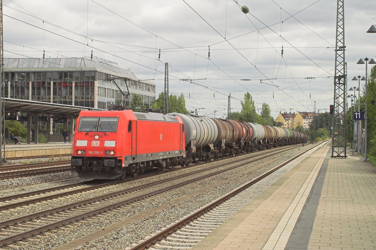 185 356-3 kommt mit einem langem Kesselzug durch Munchen Heimeranplatz. 7 September 2015