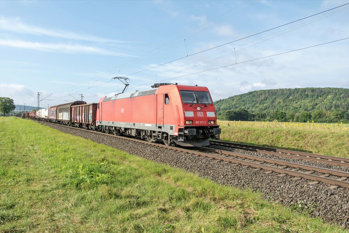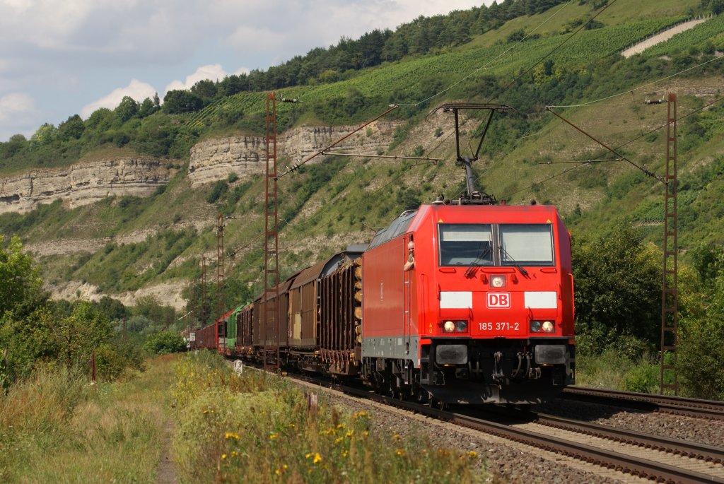 185 371-2 mit einem gemischten Güterzug in Thüngersheim am 31.07.2010