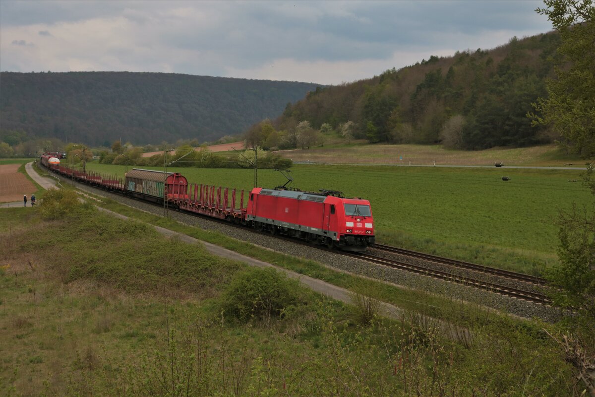 185 371-2 zieht bei km 116 (Leubsdorf) einem gem. Güterzug auf der rechten Rheinstrecke Richtung Gremberg.