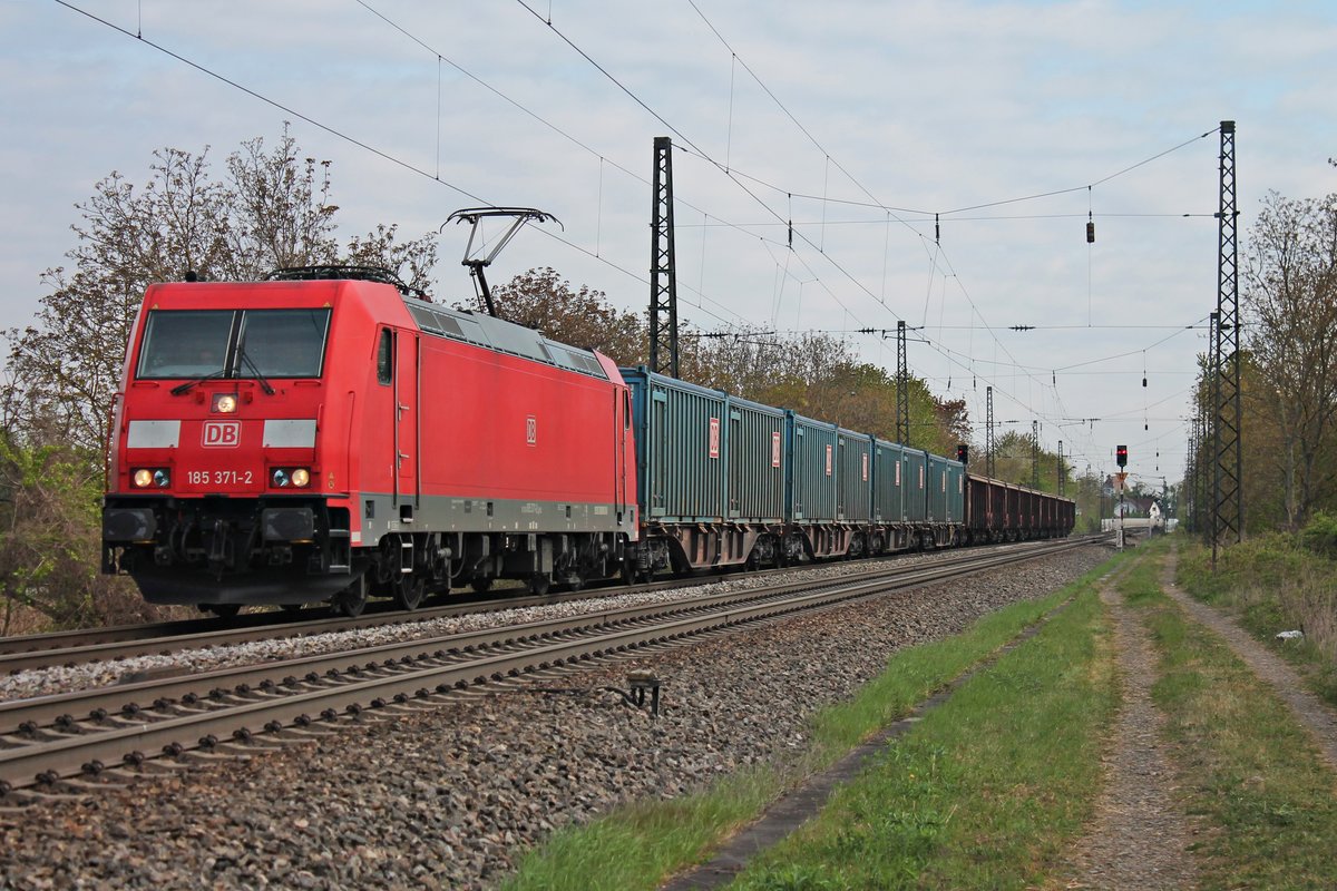 185 371-2 mit einem Umleiter auf der Donautalbahn bei Regensburg-Prüfening, 27.05.2010