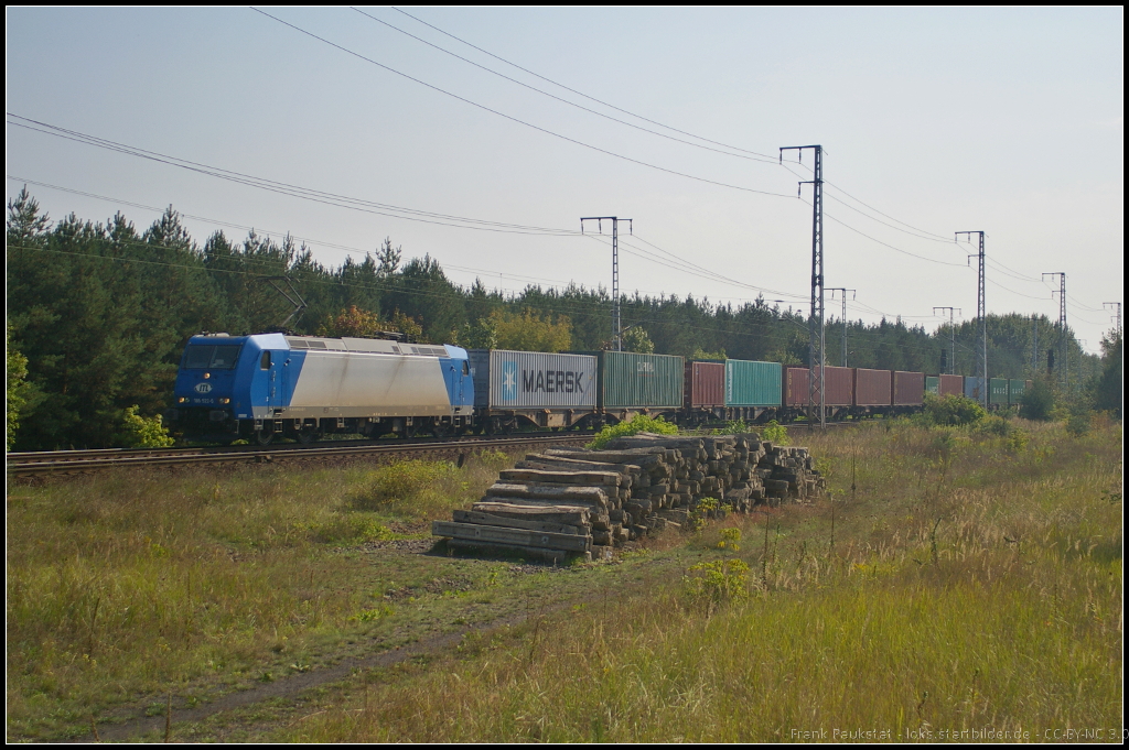 ITL 185 522-9 mit einem Container-Zug am 16.09.2014 durch die Berliner Wuhlheide