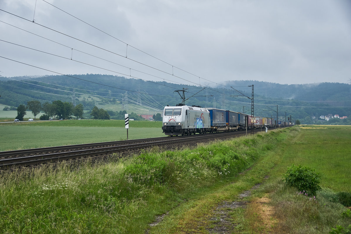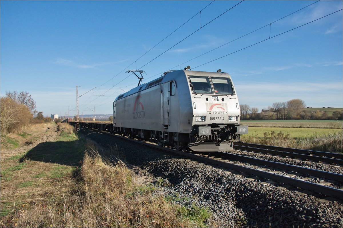 185 539-4 mit einen Containerzug am 06.11.2018 bei Obernjesa zu sehen.