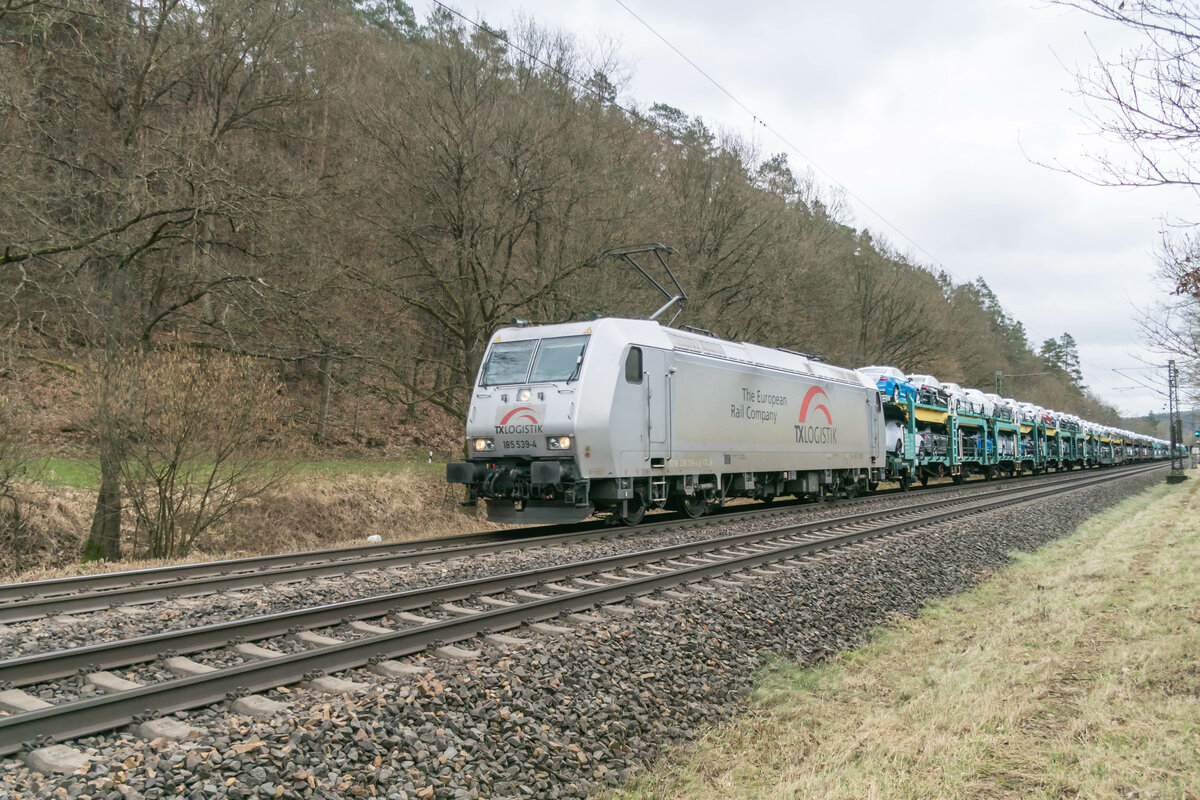 185 539-4 mit Autozug in Richtung Norden unterwegs,am 09.02.2022 im Haunetal.