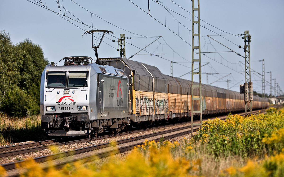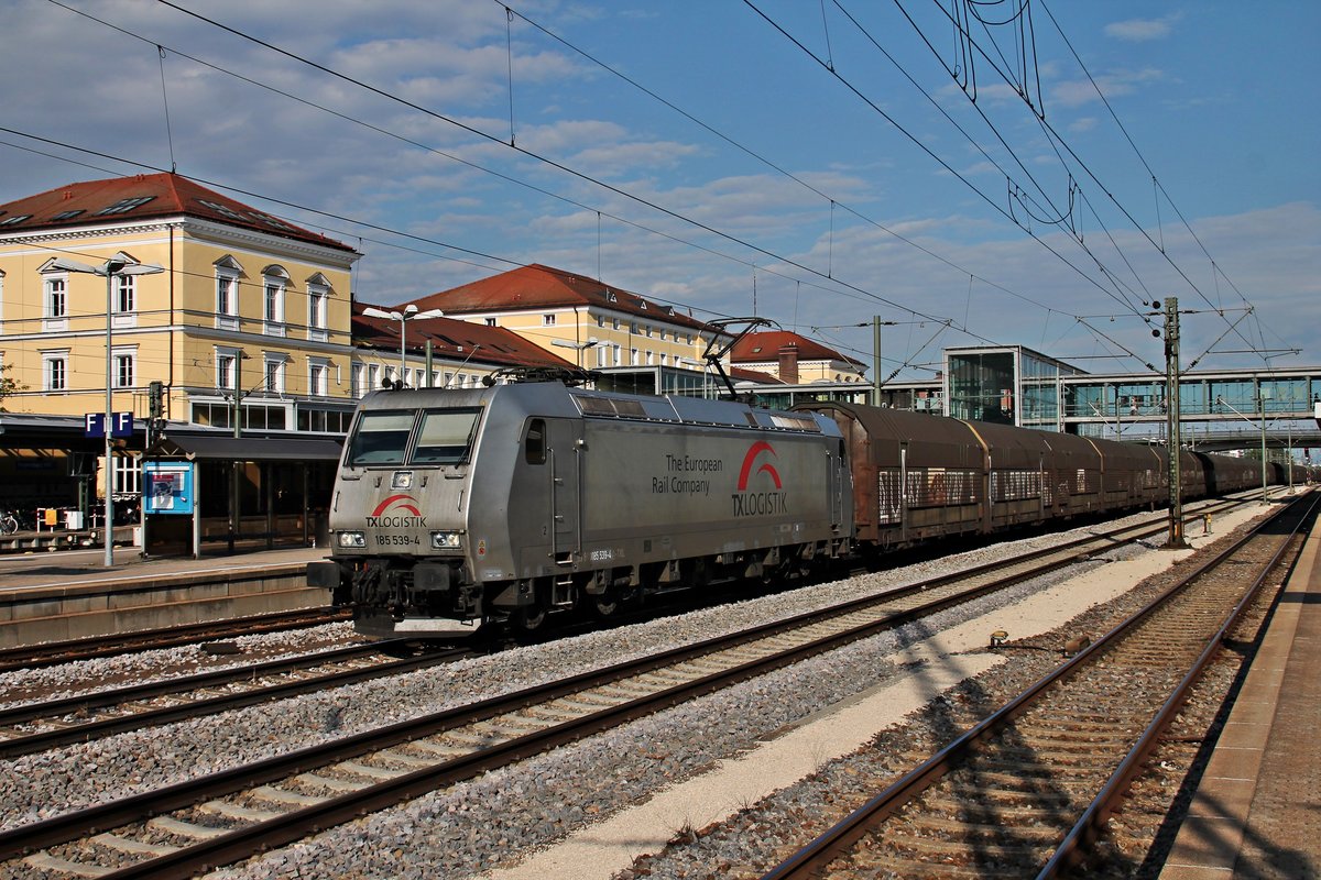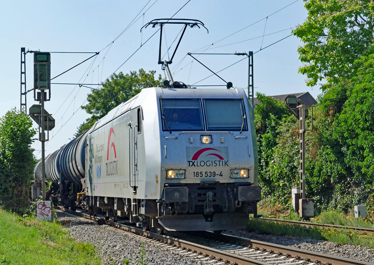 Am Mittag des 03.06.2020 fuhr die verschmierte 185 539-4 von TX Logsitik mit dem DGS 45675 (Bettembourg Marchandises - Trieste Campo Marzio) zwischen Neulußheim und Waghäusel über die Rheintalbahn in Richtung Graben-Neudorf/Bruchsal.