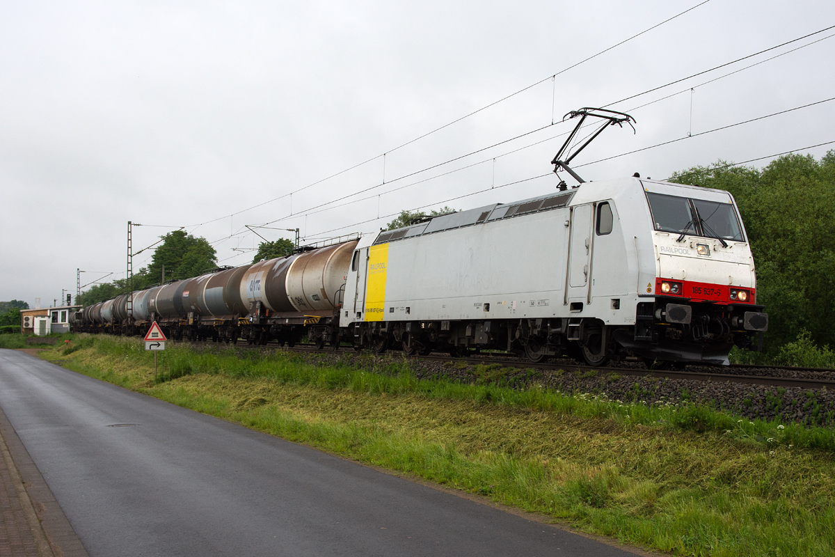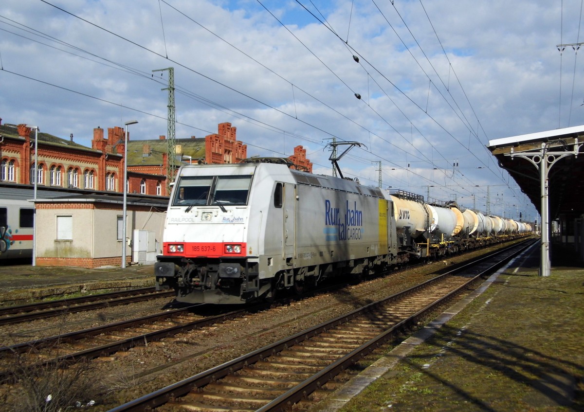 Am 03.04.2015 kam die 185 637-6 von der Rurtalbahn Cargo (Railpool) aus Richtung Magdeburg nach Stendal und fuhr weiter in Richtung Hannover .
