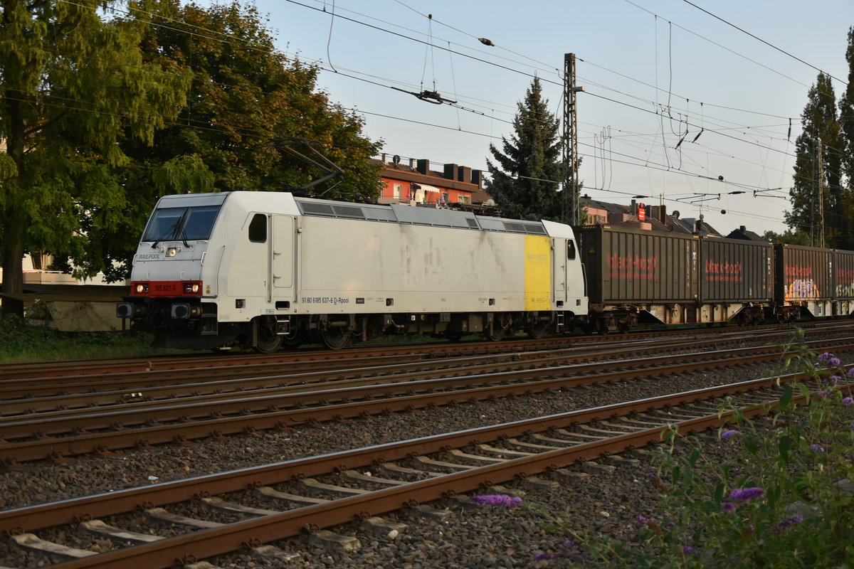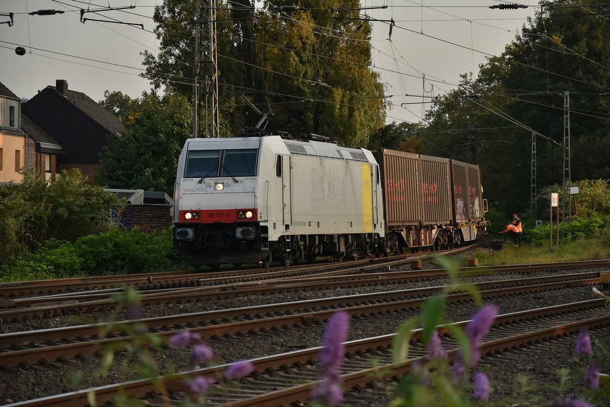 Ich staunte nicht schlecht als die Railpool 185 637-6 mit ihrem gelben Logo und eine Braunkohlezug aus Niederaussem, aus Rommerskirchen kommend in den Rheydt Hbf eingefahren kam. Eigentlich ist dieser Zug eine DB Leistung.....was das nun auf sich hatte weiss ich nicht, war aber ein schöner Farbklex im vielen Rot des Abends. 26.9.2017
