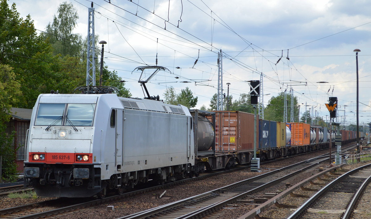 185 637-6 zu sehen am 05.08.17 mit dem DB Schenker in Remschütz.