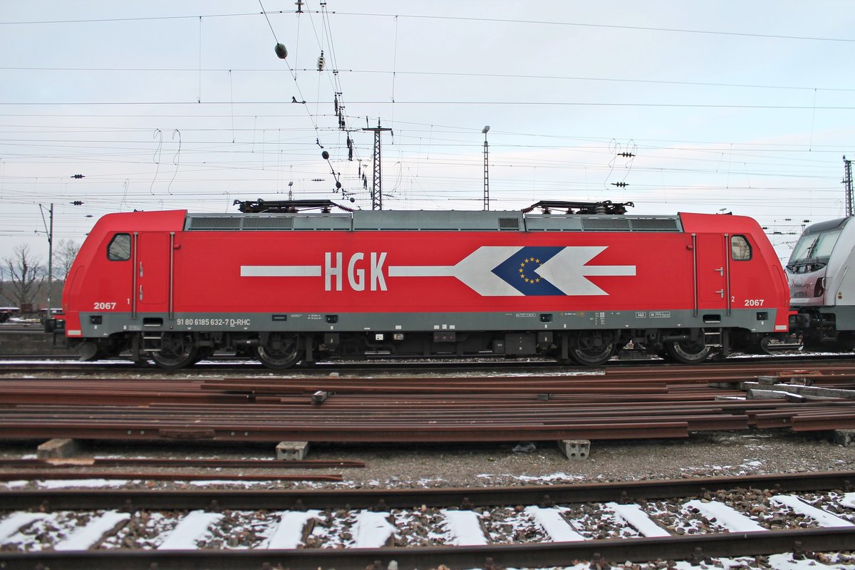 Am 21.02.2017 stand RHC 2067 (185 632-7) zusammen mit RHC 187 076-5 abgestellt im nördlichen Vorfeld vom Badischen Bahnhof von Basel und warteten auf ihren nächsten Leistungen. Tobias Schmidt