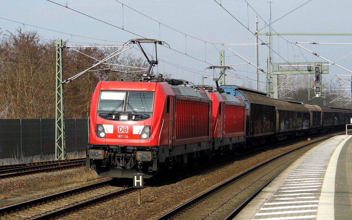 Am 26.02.2019 kamen die 187 114-4 und die 187 113-6 von DB Cargo Deutschland AG, aus Richtung Hamburg nach Wittenberge und fuhr weiter in Richtung Berlin.