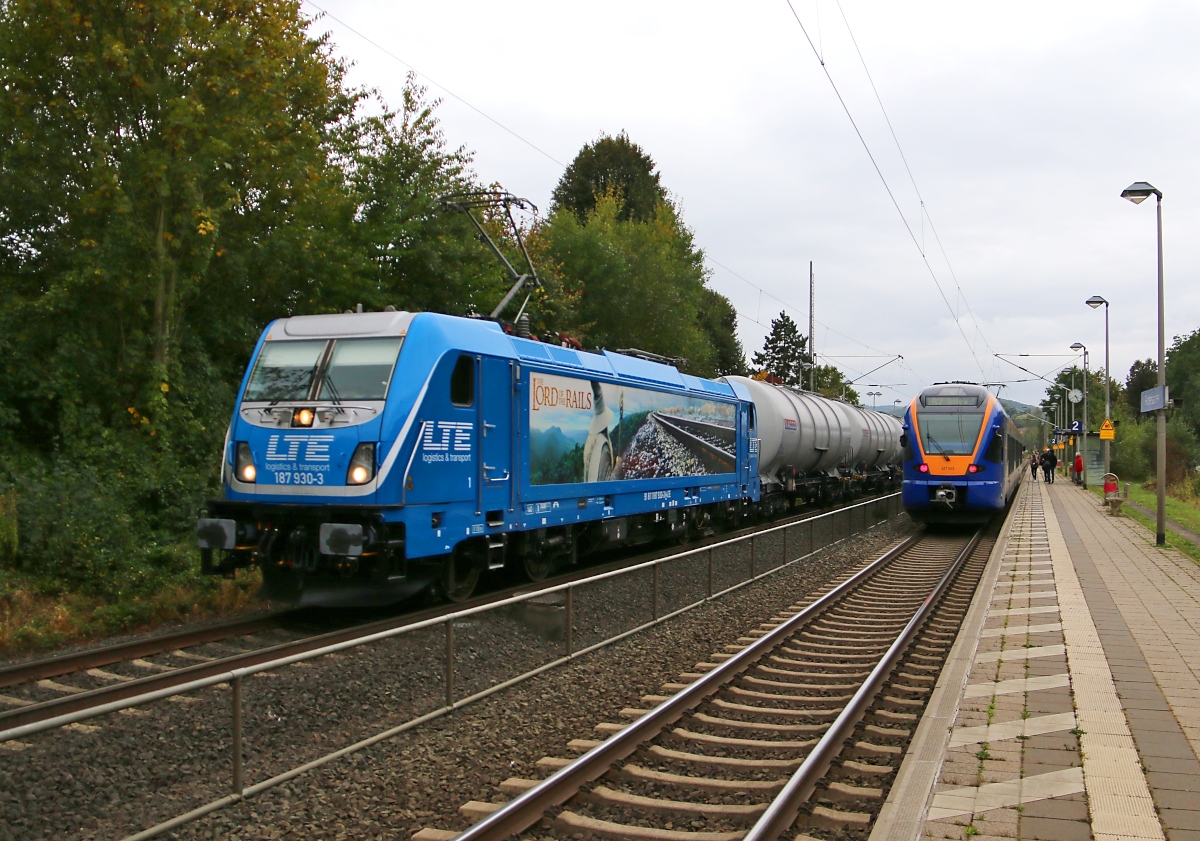 Am 11.10.2016 kam der  Lord of the Rails  in Form von 187 930-3 der LTE mit einem Kesselwagenzug in Richtung Norden über die KBS 613. Aufgenommen in Wehretal-Reichensachsen.