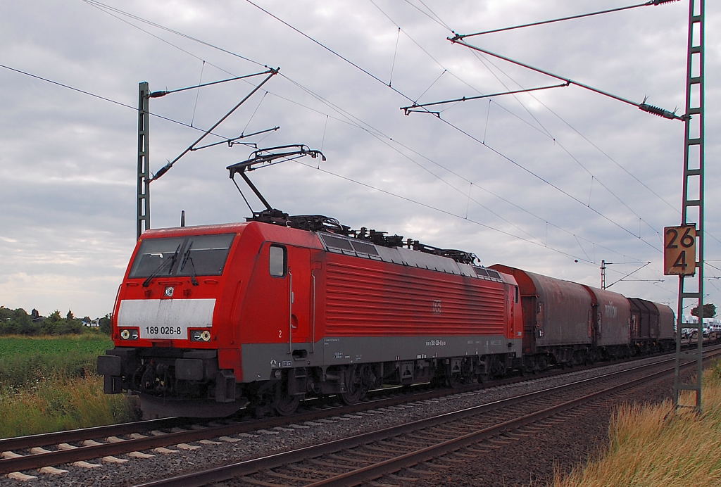 In Richtung Nievenheim fahrend kommt am Freitag den 22.6.2012 die 189 026-6 mit einem Gemischtwarenladen am Hacken bei Allerheiligen vorbei. Andreas Strobel