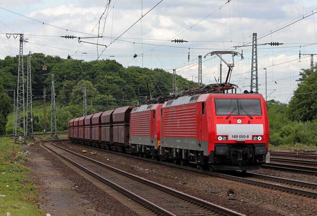 DB Cargo AG [D] mit der Doppeltraktion "189 048-2" [NVR-Nummer: 91 80 6189 048-2 D-DB] + "189 050-8" [NVR-Nummer: 91 80 6189 050-8 D-DB] fährt mit einem Ganzzug Selbstentladewagen Richtung Hansa Port Hamburg am 02.06.20 Bf. Hamburg Harburg. Lothar Stöckmann