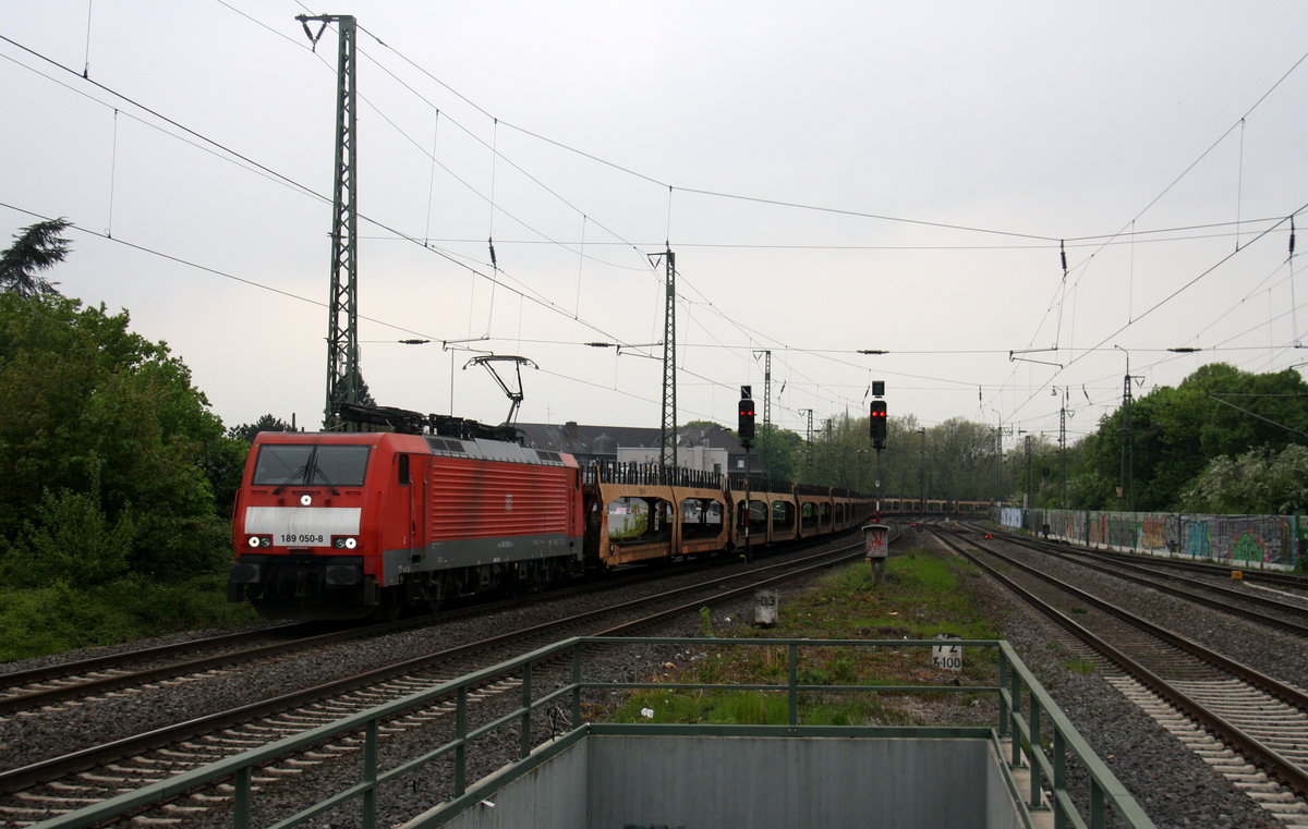 189 050-8 DB kommt mit einem Autoleerzug aus Vlissingen-Sloehaven(NL) nach Dillingen( an der Saar)(D) und kommt aus Richtung Venlo(NL) und fährt durch Viersen in Richtung Mönchengladbach-Hbf,,Rheydt-Hbf,Grevenbroich,Köln.