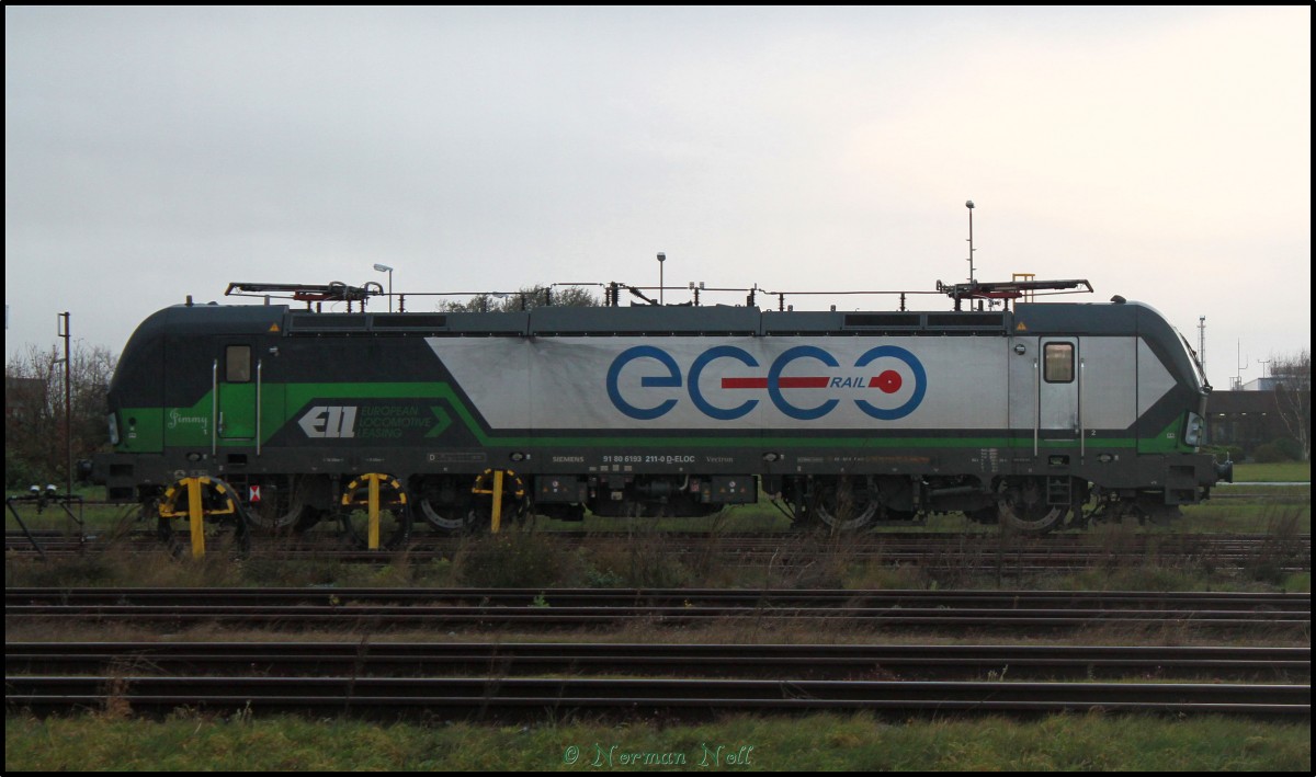 193 211-0 wartet in Wilhelmshaven auf der Tankfarm um dann mit ihrem Kesselwagenzug, durch eine Überführung nach Oldenburg gebracht zu werden, wo sie Ihrem Ziel aus eigener Kraft entgegenfahren kann. 20/11/2015 Norman