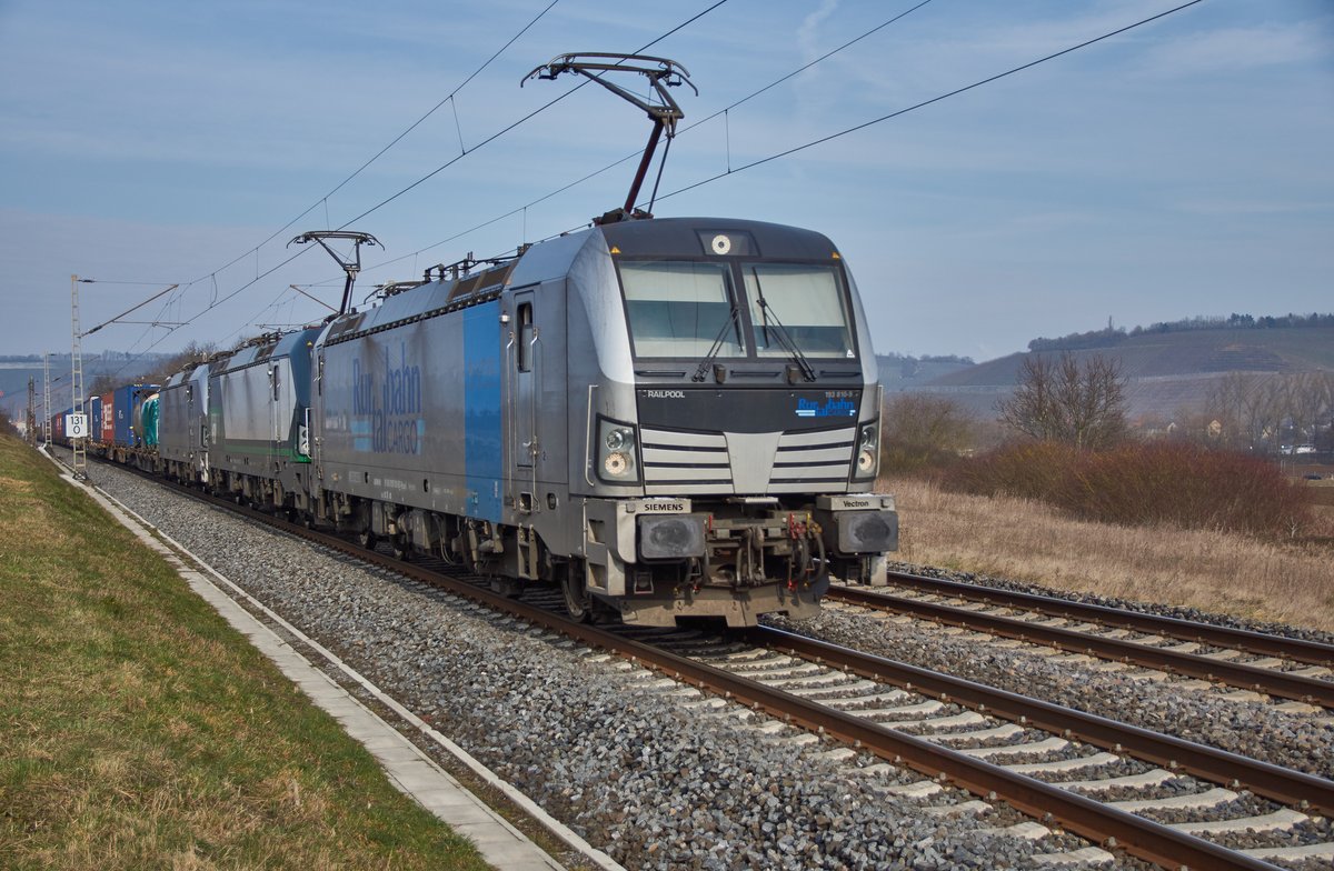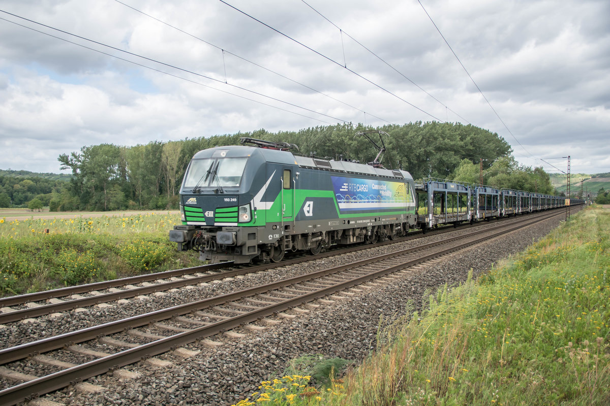 193 810-9 v.Rurtalbahn Cargo / 193 249-0 v.ELL / 193 816-6 v.RTB Cargo sind mit einen Aufliegerzug in Richtung Süden bei Würzburg/Süd unterwegs. Mathias Starke