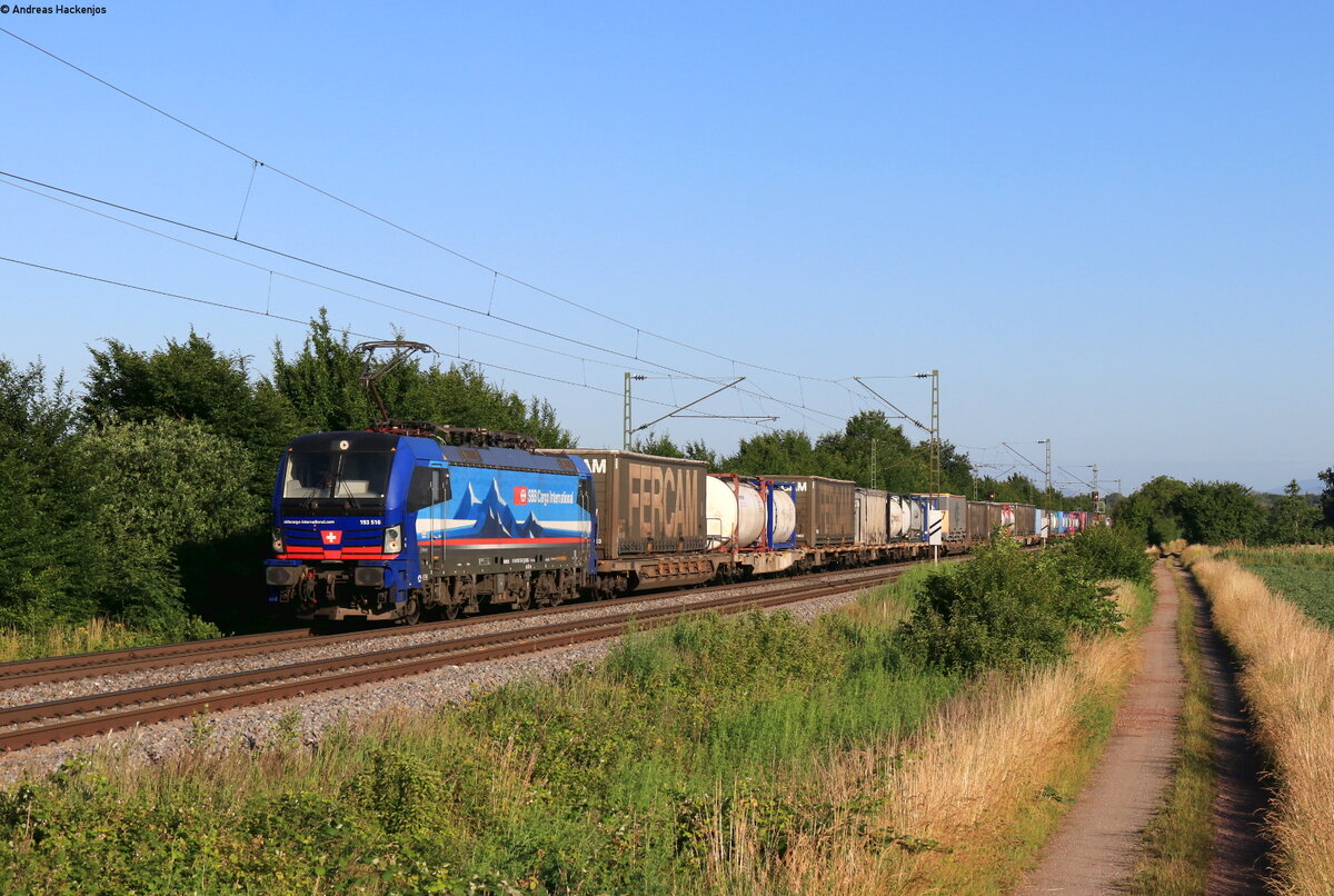 193 516-2 mit einem Walterzug in Richtung Süden unterwegs,bei Kerzell am 22.03.2023