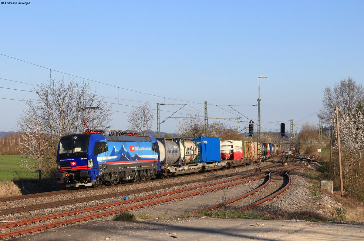 Doppeltraktion, mit den Siemens Vectron 193 256-5 und 193 523-8 durchfährt den Bahnhof Pratteln. Die Aufnahme stammt vom 09.04.2020.