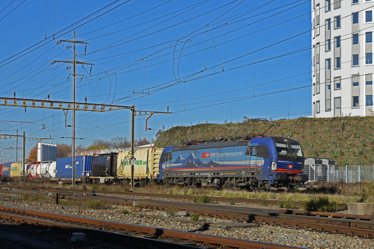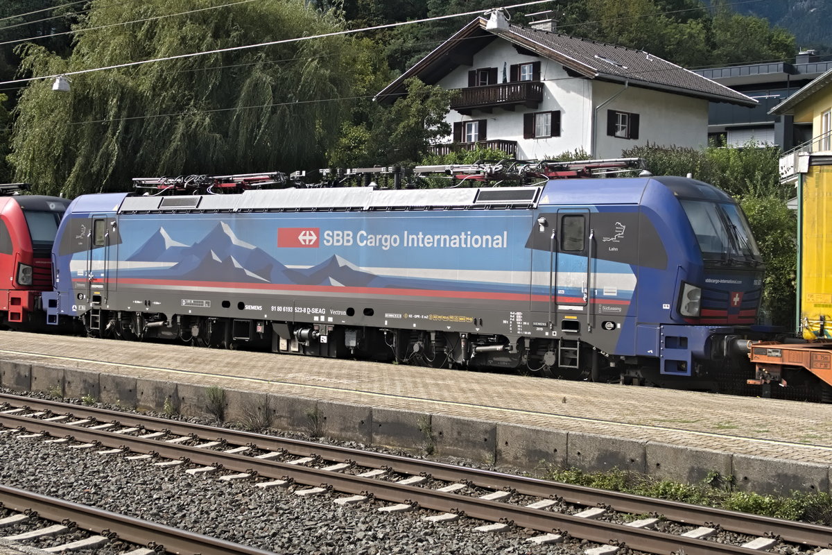 Siemens Vectron 193 523-8 durchfährt am 10.09.2024 den Bahnhof Pratteln.