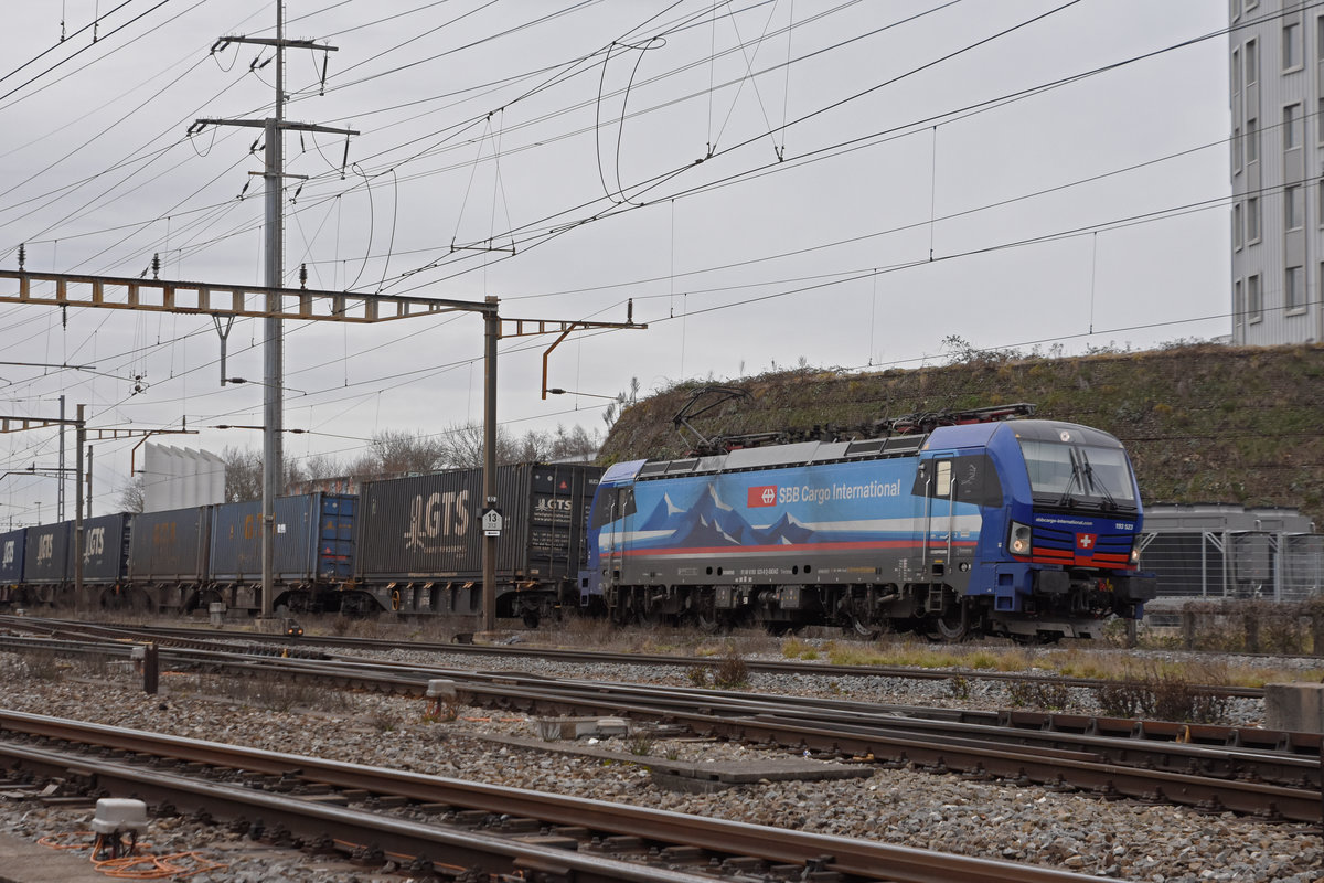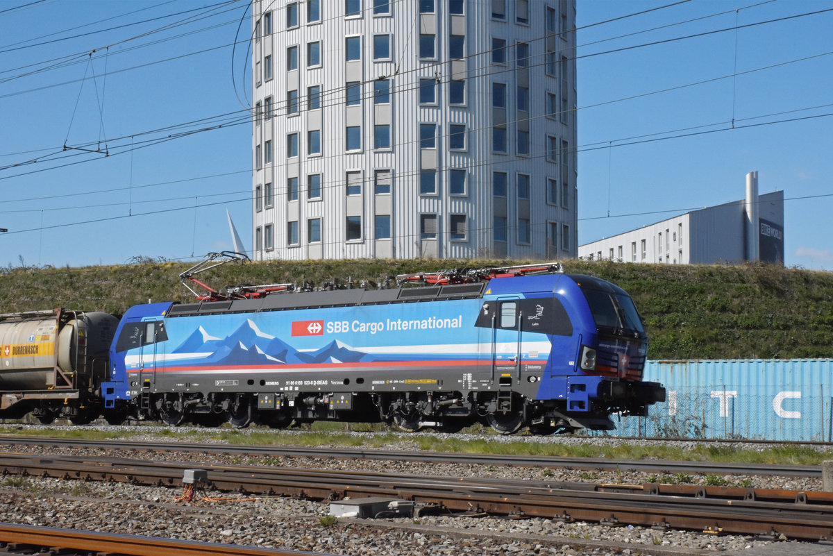 Siemens Vectron 193 523-8 durchfährt am 04.05.2023 den Bahnhof Pratteln.